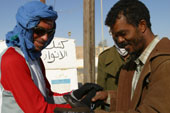 The wind is favourable for Serge who flies on the road, it will make 82 km instead of the 74 km which it had provided the morning.Sand whips his calves.His average of cardiac pulsation is 98.It benefits from this favourable wind to make more kilometers.Today to 25th kilometers, we cross the town of Zillah, our two guides Amsalm and Farash leaves us.They we will have guided from Zuella to Zillah, in this desert which is not easy to cross for somebody who has no knowledge of it like us.From Zillah, we will follow an asphalt road until the Libya/Egypt border.The next city of our route will be Madama.