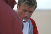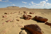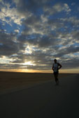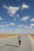 The morning temperature is higher this morning, freezing is replaced by moisture.The tents are wet as if it had rained.The wind ceased blowing today for our greater happiness.Serge has the face marked more and more by tiredness.This evening, it will finish its stagewith fallen the night.A surprise awaits him:we camp behind the service station of Madamah and there is a hot shower.Serge appreciates the heat of water on these painful muscles , he relax. The landscape always so desert is splendid.