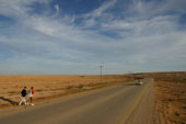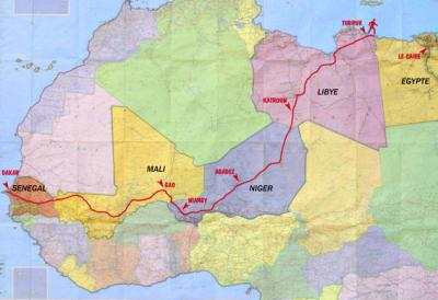 Serge has some intestinal problems this morning.He has to go to the toilets every 2 kilometers and it is not easy with this important circulation to find intimacy.With the hours, this problems seems to be better.It is our last day and last night in Libya.It is also the passage of the 7000 kilometers which because of a GPS problem will be wasted.The festival will be for another day !
