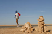 Between Marsa Matruh and Siwa, noone village, we find the desert.The toe of Serge is better, it was obliged to cut out his runnings to avoid frictions.The organization with our new guides is for best.Serge is reassured.This morning, he runs at 5km/h during the first 2 kilometers, it is necessary that mechanics heats and he needed more and more time to take the rate.Despite everything Serge will do a good stage and will arrive early at the camp. At 7.30 p.m, everybody is lying.