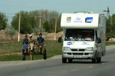 And the last point that makes our organization complicated: Serge has to run and progress along his route every day, in spite of all the borders to be crossed.  With two vehicles following him the border crossings will become more difficult from Turkmenistan until we get to China.  If the logistics would be provided by team members on bicycles or roller blades, things would be a lot simpler but then Serge wouldn’t have the level support he needs to meet his objective.