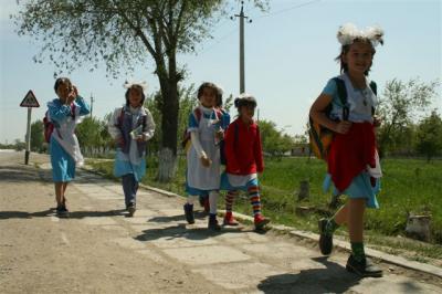 The air is rather polluted by whitish smoke from various chimneys.  After Navoi we crossed a succession of villages.  Uzbekistan has 25 million inhabitants and it is a country which is mostly desert.  Even if the monoculture of cotton has been diversified to allow other crops, Uzbekistan still produces 5 million tons of cotton per year and its economy depends on this production, which places it among the top four producers in the world.  We passed a lot of trucks filled with this precious merchandise.  At this time of year, the cotton has been planted but has not yet sprouted.