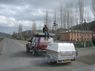 Kirghistan  is our 4th and last country in Central Asia.  The capital, Bishkek, is located in the North and this republic, like its neighbors, has been independent since 1991.  5 million inhabitants share the plains in a country which is 95% mountains (40% of them rise above 3000 meters and there are 3 peaks which reach an altitude of more than 7000 meters) and whose border with China totals 3,878 kilometers. Kirghistan offers trekking, skiing, heli-skiing, trips on horseback, mountain climbing, rafting, fishing (there are more than 2000 lakes), hunting with eagles and golf.  It is a real paradise for nature lovers and Serge, as well as the rest of the team, is delighted.