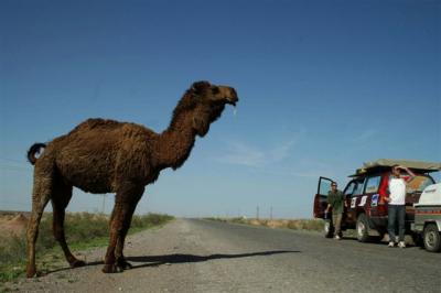 Noah’s ark must not have run aground on the Mount Ararat in Turkey but rather in this desert of Turkmenistan. There are camels, foxes, tortoises, horses and snakes. The fauna is incredibly rich and our eyes light up at each little beast encountered.