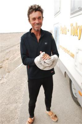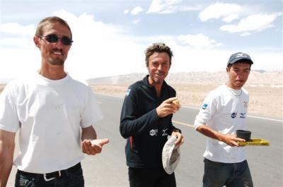 The new team got a slow start, due to jet lag, and left at 11H00 to join Serge, whom they met 1 hour later at the 27th kilometer.  It was hot, very hot and the sun stung the white skins of the newly arrived.  It didn’t keep Ludo from baring his chest, in spite of Liu’s good advice not to.  Rémy picked up the newly filled gas bottle, which is always a feat and we received a small refrigerator for the 4-wheel drive, which our very efficient agency had ordered for us — thank you, Li.