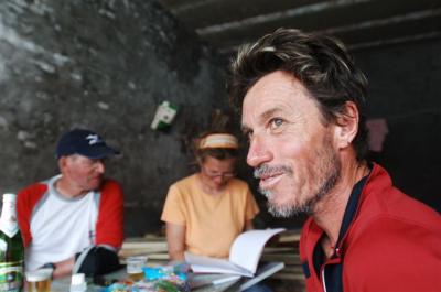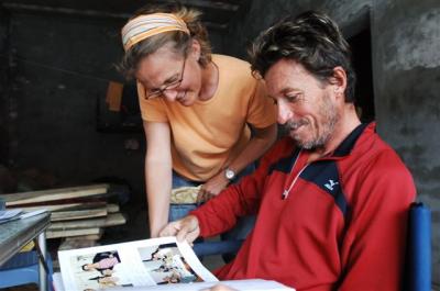 Le soir au campement laure et Serge lisent un livre d’or apporté par Daniel – crédit photo Thomas Brégardis