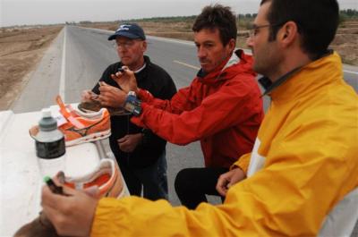 Changement de chaussures pour Serge (sa 10eme paire)… Photo Thomas BREGARDIS