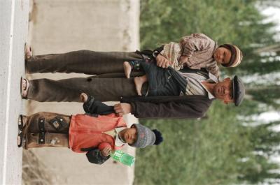 Père et ses deux enfants.. Photo Thomas BREGARDIS