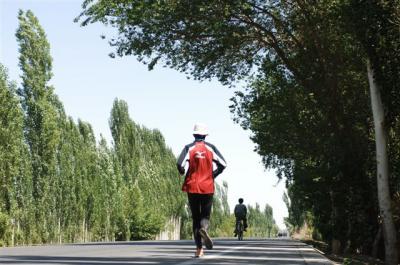 The followers are OK: Laure is tired and a bit listless, Daniel is always in good shape, Ludo is disappointed because Serge doesn’t want to be massaged and Thomas, after a bad patch with his photos has once again found good subject matter. The caravan continues on its way. Camping becomes routine and this evening we will break the monotony by seeing a funny DVD. As for Serge, he is getting ready for bed and won’t benefit from our laughter. At 21H15 it’s time for bed. Good night.