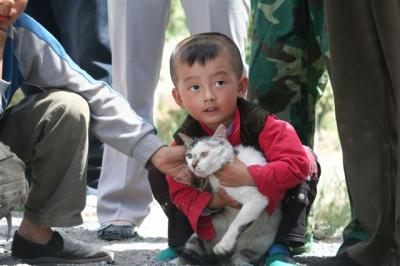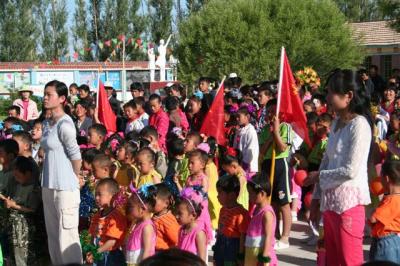 At Shulehe, we passed a school where the annual prizes are being distributed to the best students. For the occasion, the children were decked out in their best clothes and the members of the jury all wore a red scarf around their neck.