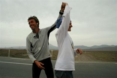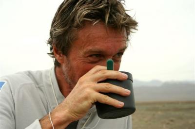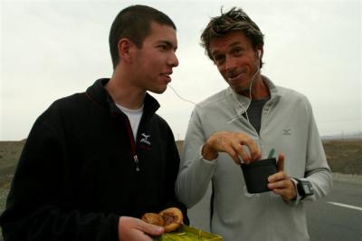Serge ne se plaint de rien et semble courir avec aisance. En fin de matinée, il demandera son lecteur mp3. Une fois n’est pas coutume puisque la dernière fois qu’il a écouté de la musique, c’était en France. Voilà notre Serge boosté par des airs endiablés, il aime que ça bouge. Au ravitaillement il fait écouter le morceau à tous pour savoir qui chante cet air puis il prend la main de Laure pour faire 2 pas de danse. Quelle souplesse ! Non ça c’est pour rire car Serge est malheureusement raide comme un bout de bois. Un moment de pur détente même si cela ne dure que 2-3 minutes : ça fait plaisir de voir Serge détendu.