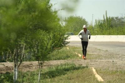Serge a une journée difficile, malgré le profil qui depuis le Turkmenistan est quasiment plat, les étapes sont longues. Il ne parle pas : concentration et surtout lorsqu’on le connaît bien c’est que cela va mal soit physiquement soit moralement. Jean-Marc se demande si ils ont fait avec Benjamin quelque chose de mal. Il faut rassurer les suiveurs qui sont présents chaque jours auprès de Serge : tout cela est normal, Serge n’est pas une machine et ne court pas 75km par jour impunément. Il inflige un régime sévère à son corps et parfois une petite fatigue peut exacerber une petite douleur physique.