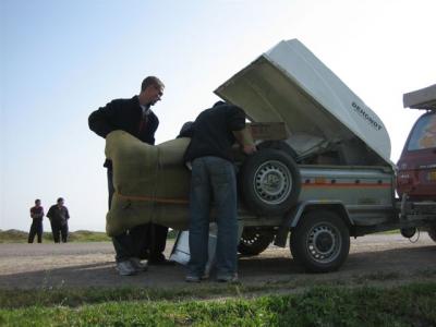 -Laure a endommagé le camping-car en reculant et Jean-Marc et Benjamin rafistole tant bien que mal les dégats.
