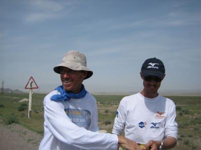 Serge a retrouvé le sourire ce jour même au Tadjikistan : une bouffée de soulagement et de bien-être marqué par le passage des 9000 km à 7,4km du départ. Un pays accueillant, la population souriante est tout simplement heureuse de vous voir. Et puis les routiers, et tout spécialement un des copains iraniens de Serge rencontré à la frontière entre l’Iran et le Turkmenistan qui fait des navettes avec son semi-remorque entre Tabriz et Osh. Et bien aujourd’hui c’était les retrouvailles avec ce chauffeur qui repart vers l’Iran. Serge ne se sent plus de joie, il ferait presque partie de la famille à sillonner les mêmes routes que ces routiers turcs, iraniens croisés et recroisés maintes fois.
