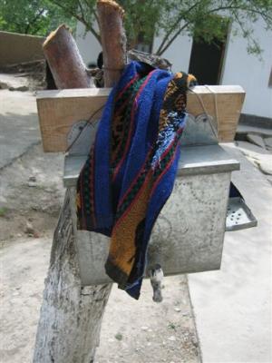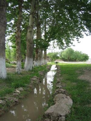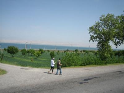 Nous sommes dans les faubourgs de Khojand mais très vite nous nous retrouvons dans la campagne tadjik. Nous longeons par son versant sud le lac de Karakum (70km de long et 20km de large), immense réserve d’eau alimentée par le fleuve Syr Daria et surplombée par une magnifique montagne côté nord. Le franc soleil intensifie les couleurs, rendant ce paysage éblouissant. Les routes, tout comme en Ouzbekistan, sont bordées de muriers. Ces petits arbustes dont les branches seront coupées en mai serviront à nourrir les vers à soie jusqu’à ce qu’ils tissent leur cocon. Tout cela pour nous rappeler que nous sommes sur la route de la soie.