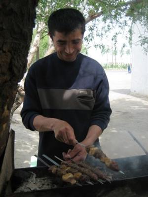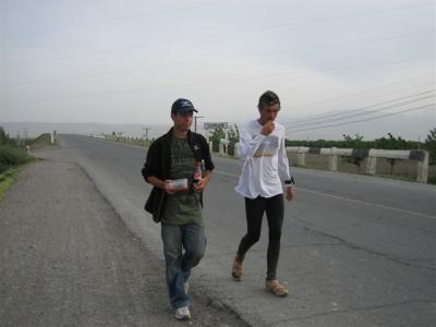 Serge demande une cuissarde pour soulager une contracture derrière la cuisse droite au 2ème ravitaillement et celle-ci semble le soulager. Bon gré, mal gré il avance. Ce matin, nous ne savons pas si nous passerons la frontière pour l’Ouzbekistan ou pas puisque nous regagnons ce pays par Qoqand puis Andijan avant de rejoindre Osh au Kirghiztan.
