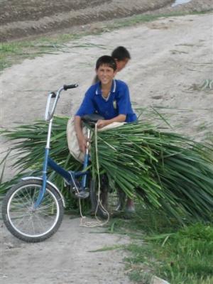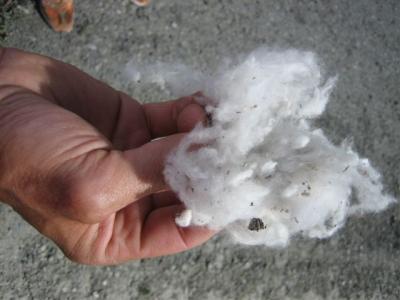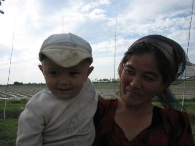 A notre passage à Boz, nous croisons 2 usines de traitement de coton. Les peluches blanches en suspension dans l’air nous font penser à du coton mais Serge ne s’y trompe pas : c’est en réalité du pollen. Les champs s’étirent à perte de vue et l’activité y est importante pour un samedi. La plupart des ouzbeks travaillent 6 jours sur 7 avec pour seul jour de relâche : le dimanche.