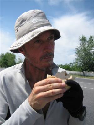 Longues lignes droites, chaleur lourde, absence totale de vent, une journée interminable qui s’achèvera pour Serge en marchant 6km. Il ne veut rien lâcher alors que depuis deux jours nous l’incitons à faire moins de kilomètres. « J’ai un objectif et une moyenne à tenir ». Serge est à bout de forces et dans ces cas là, il râle d’un rien : «A vec la fatigue, je ne supporte plus rien ». La communication avec les autres se coupe inexorablement ou tout du moins n’est-elle pas de bonne qualité.