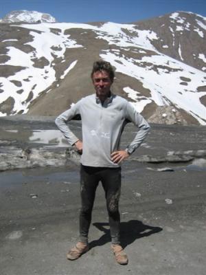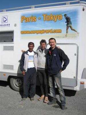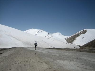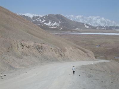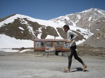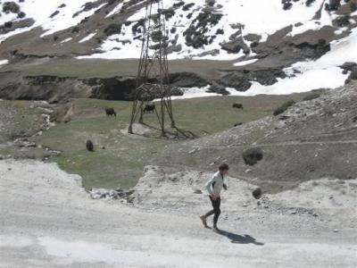 Ca grimpe doucement ce matin, tout doucement. Shafhat, le chauffeur a même couru 8 km en se calant sur le rythme de Serge. Puis les choses sérieuses commencent : la montée du col de Taldik que Serge atteindra au 21ème km, sans jamais redescendre en dessous de 3000m jusqu’à la fin de son étape.
