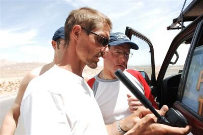 Jean-Marc, renseigne Ludo et Daniel sur le fonctionnement du GPS – crédit photo Thomas Brégardis