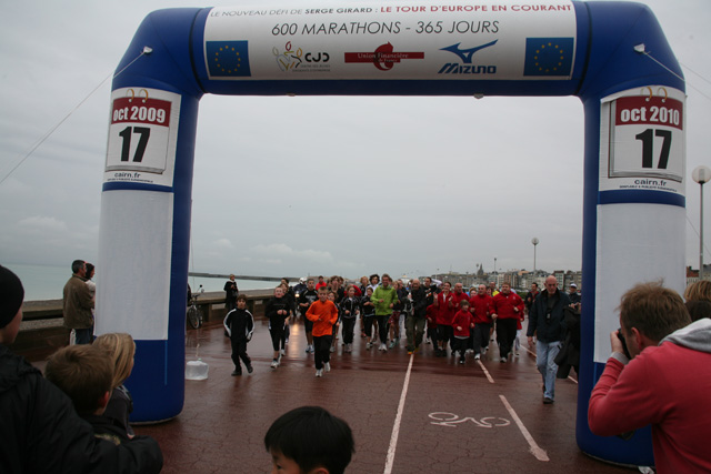 This morning the square in front of the town hall was deserted and Serge, 5 minutes ahead of schedule, was met by, among others, Eric and Eric from the Hélio Service Company which is one of the event’s partners and is actively participating by organizing a challenge within the company. It consists of having all the employees and managers make a weekly tally of all their mileage, whether it is on exercise bike, roller blades, bike, running outside or in a gym, rowing, swimming…