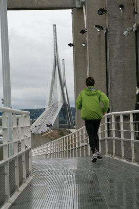 Around 1:30 PM Serge goes over the Normandy Bridge. Philippe, who has gone over the railing, is stopped by 7 policemen who were alerted by phone by someone who thought he was going to commit suicide…. He is restrained briefly, the time it takes to explain…..