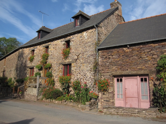 Because he didn’t see the castle of Paimpont, Serge stopped in a typical small village where the houses are built of red shale. In ancient times there was no court house in this town of Monterfil but there was and is still a “chicane” where chicaneries were resolved. Our pause was enhanced by an explanation for tourists from the owner of the place, who was in the process of removing all the superb geraniums from the windows.