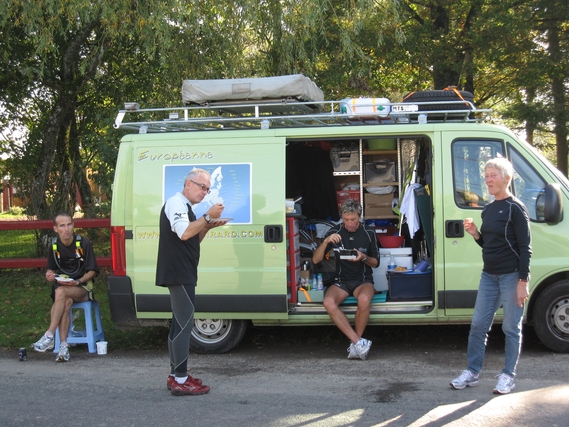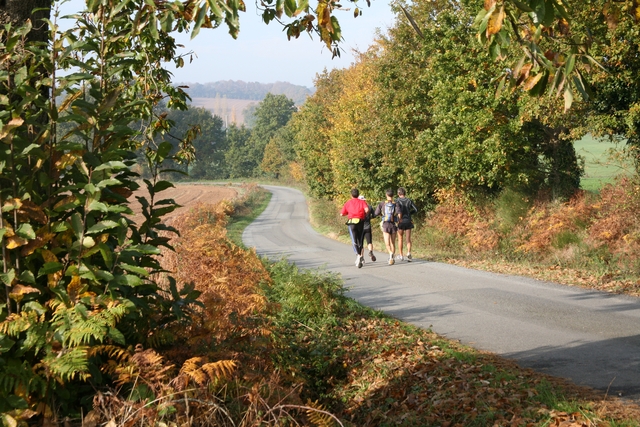 Serge, true to form, was ready to start at 7:30. Leaving Rennes was not easy, as is always the case in cities we don’t know, but we had no snags. Julie threw us a kiss in Saint Jacques de la Lande and today’s congenial running mates had to wait about an hour for Serge’s body to warm up because the morning departure is very difficult. Once the warm-up phase has passed, Serge relaxes and opens up to others. He chattered with Alexis, Denis and Gaétan all the way to Saint Péran. Gaétan brought us news from his friend, Serge Roetheli (who ran around the world with his wife, Nicole, several years ago). Alexis ran with us to Paimpont where in the end nobody saw the beautiful castle of Merlin the magician which is hidden behind trees on the far side of a pond. What a shame!