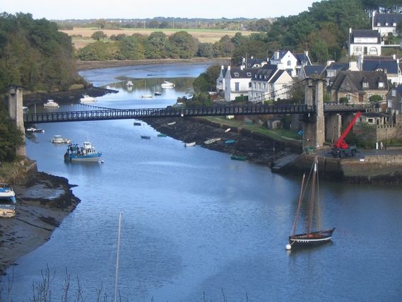 Departure is in the sunshine but the day isn’t without clouds because of the frequent showers all day long. There is 80% humidity and the ever present wind. The Gulf of Morbihan impresses us even if our route does not pass by the famous resorts such as la Trinité sur Mer or Carnac. We go through some delightful villages: Belz, Bono and Noyalo….