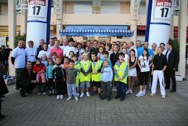 At 4:45PM Serge is standing in front of the Casino of La Baule. The Pornichet running association, as well as other clubs from the region is here. The departure on the embankment will take them for 5km. At the gates of Pornichet a swarm of children is waiting for Serge to run the last km and this whole group comes safe into port at the Place des Océanides, in front of the bar “Le Suroit”. Organized by the Saint Nazaire chapter of the CJD, the welcome couldn’t be warmer. Thanks to Stéphane and Lionel for the logistics. Sheltered from the wind we accept a glass of Sangria and some hors d’oeuvres while Serge answers questions from the local media, the children and their elders. Christian, a representative from the Laboratory of Guérande, gives Serge a sampling of food supplements that stimulate recuperation. It’s true that Serge, apart from his 3 citrus fruit juice: “grapefruit, lemon and orange” does not take any food supplement whatsoever. And last but not least, thanks go to Christophe of the UFF and his colleagues.