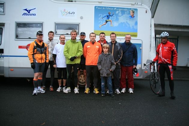 Our arrival is celebrated by a small welcoming committee in the Emstal Hall in the presence of Mr. Pavillon, deputy for Sport, and Mr. Bigot, the town’s mayor. Serge receives a beautiful book of photos of the city of Ponts-de-Cé.