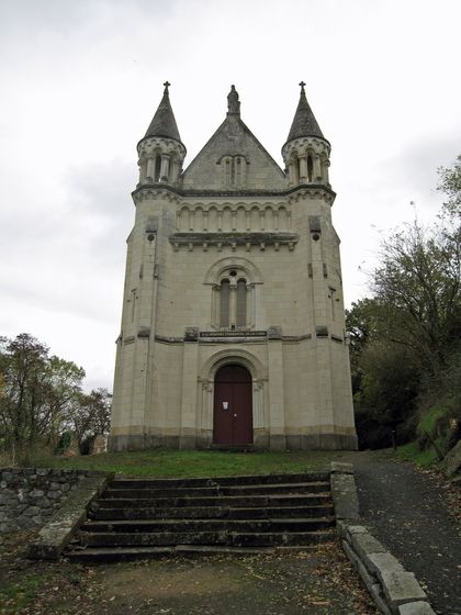 The descente to Chalonnes-sur-Loire from Bourgonnière is magnificent. We are again in vineyards; these give the famous « Coteaux du Layon ». From here we are on the Corniche Angevine, a UNESCO World Heritage Site which is squeezed between the Layon and Loire Valleys. At the hamlet of Ardenay, there is the chapel of Sainte Barbe des Mines, built in the 19th century (Sainte Barbe being the patron saint of dangerous occupations such a mining). At that time there were coal mines in Anjou.