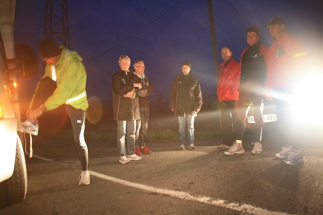 Final preparations for departure take place in early morning chill; Serge is ready with a few courageous runners. In the morning Serge is not very talkative, he is already concentrating on the day ahead. If the body sometimes gives way under the strain, he has to retain the mental strength for long hours. Even though he enjoys the company of other runners, sometimes he has to stay in his bubble and everyone understands this.