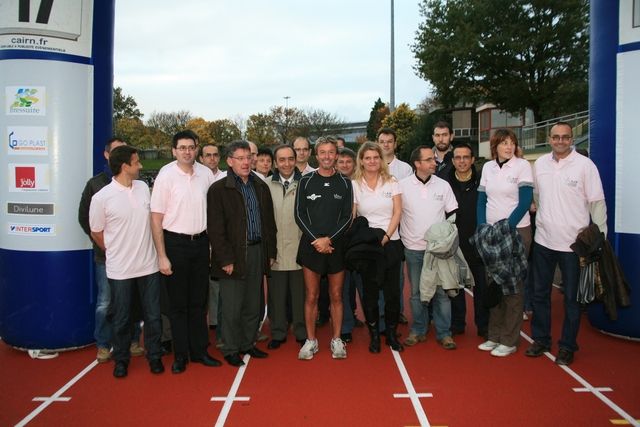 90 students from the Notre Dame high school are waiting for Serge at the Alain Métayer Stadium. The CJD team who is organizing the evening is ready. The mayor, Jean-Michel Bernier and his deputy, Jean Grellier, are waiting for Serge at the finish line. Alain Prual is there too. This athlete holds the French 24 hour record with 268.859 km. He is a six time French champion, twice runner up in the European championships and twice runner up in the world championships. He is a man to know, whose experience is shared.
