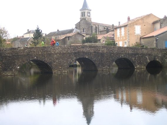 Serge runs against a head wind all day long. There are some showers and a bright patch which lasts 15 minutes. There are several rivers to cross: the Sèvre Niortaise, the Vonne and the Egray, each with a characteristic stone bridge, one narrower than the other.