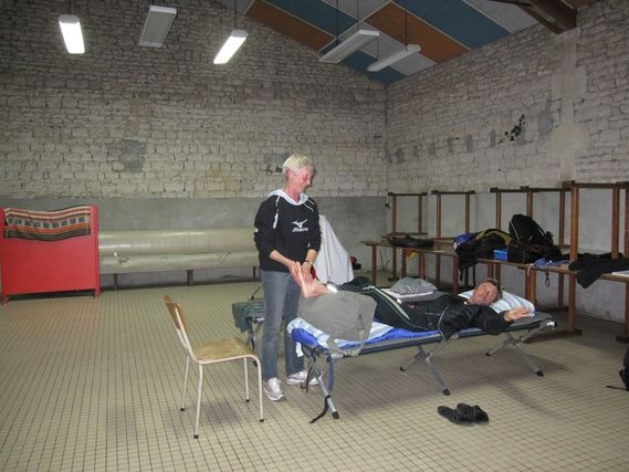 Eliane and René are always even tempered and are on top of the situation for 12 to 14 hours because the days start before the race and end after it has finished. Serge was silent all day long but is inexhaustible this evening. Eliane gives him a foot massage and he is in heaven: it’s the 4th massage since the race began!