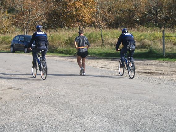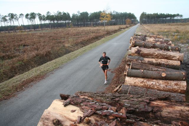 At Marcheprime, 2 runners accompany Serge; the others have stopped along the way. At Biganos, Serge is 30 minutes ahead of schedule and decides to increase his mileage. He is doing this more and more frequently.