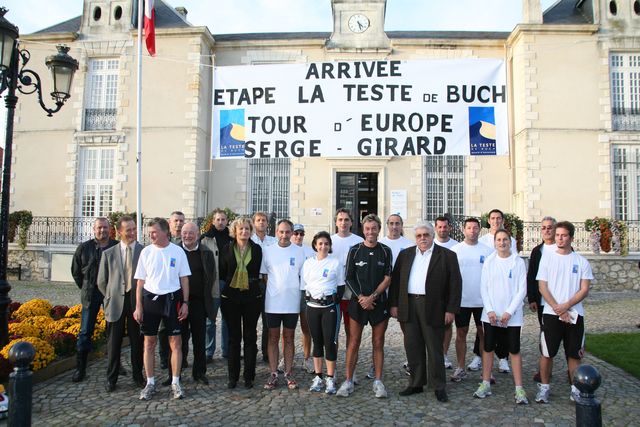 At La Teste, Robert, who is a physio-therapist and president of the Athletic Club of La Test Arcachon, is one of some 15 runners who are waiting to run the last 2 kilometers with Serge. Tonight we will set up our headquarters at his place and be his guests for the evening.