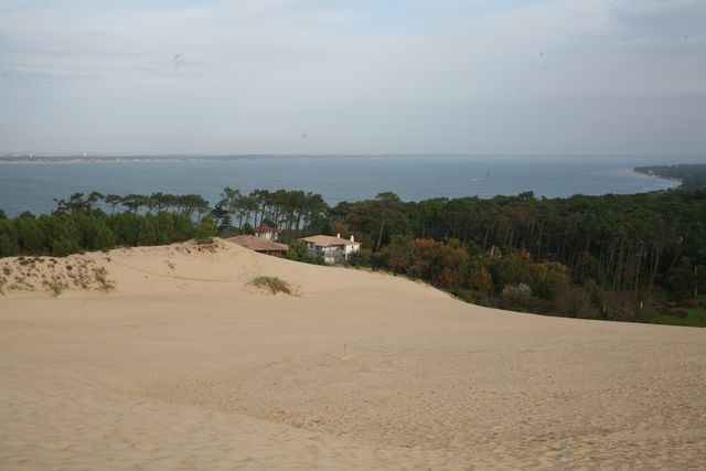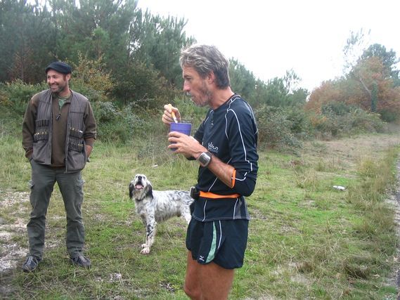 Since we passed Saint-Antoine-sur-l’Isle on Wednesday afternoon, we have been in the Aquitaine region. The Gironde department is behind us now, as is the last beautiful view point in the department: The Dune du Pilat. It’s there that Philippe, our photographer, plans to have Serge run back and forth in order to get the best shot. Serge runs accompanied until Km32. We are now in the Landes department, at Biscarrousse-Plage, following which he attacks a winding and hilly road all the way to Biscarrousse. At this point and after 18 Km of running alone he feels a bit limp but his form comes back as soon as he has someone running with him.