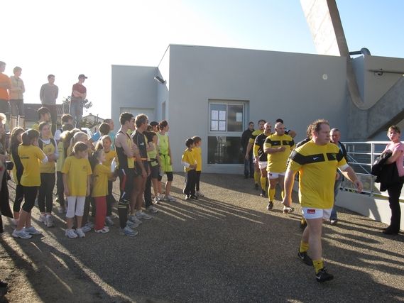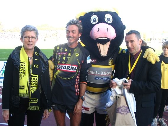At the stadium there are some 20 young people from the athletic school of the Montois Stadium. With 90 young graduates and a total of 230 members, it is one of the oldest athletics clubs in France. It was founded in 1908. The school’s president, Mr. Dufau, has done everything necessary to welcome Serge and the rugby club. These 2 sports groups are sharing the stadium and it is a delightful alliance which means that thousands of spectators are present at the end of the stage. I would like to thank Vincent, president of the Mont de Marsan chapter of the CJD who helped us get in touch with these 2 clubs.