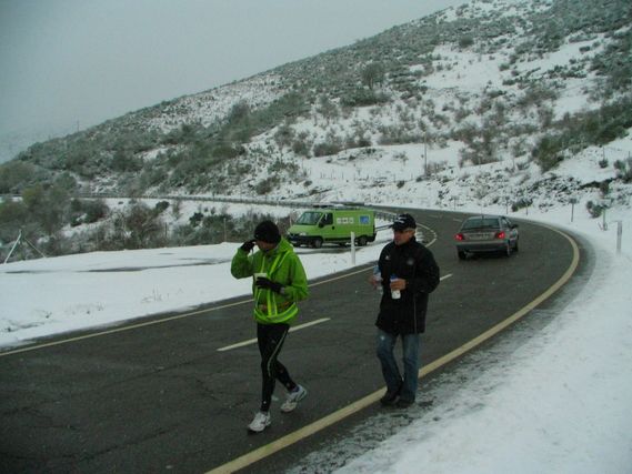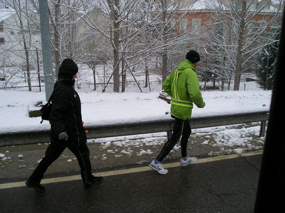 It’s really cold and we have brought out the winter clothing: caps, gloves, fleece, Mizuno Breath Thermo socks, and winter shoes.  Even Serge has put on long pants, having given up wearing his good luck shorts.