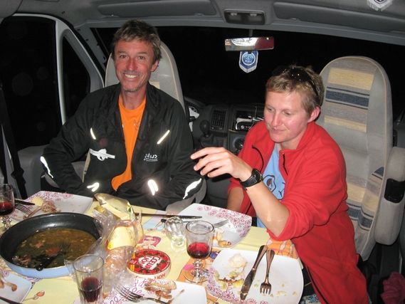 The kilometers stretch out and the minutes don’t tick by fast enough; Serge, head down, seems to be tired. The trucks that pass him, barely missing him, seem to suck up all his energy. The finish takes place as night falls, after Figueira Da Foz. The 2 bridges over the Mondego River are 5km of dual carriageway, which is not very pleasant. And of course Maria isn’t there to help Serge forget his race and the time that is passing.
