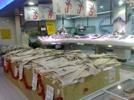 In another area, culinary, supermarkets are full of salt cod, stacked in piles on the shelves. Roger has taken a picture of it today.