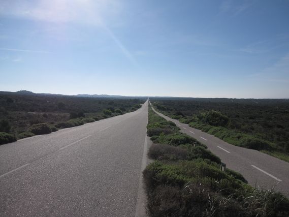 After km9, at Carriço, we turn onto a road surrounded by pine trees. The surface leaves a lot to be desired, with many of potholes so the vehicles go dead slow but it’s so tranquil that it doesn’t bother: we are not in a hurry. The big sand dunes, covered in pines, prevent us from getting a look at the sea until we reach Praia de Vieira, where we see the surging Atlantic in spite of beautiful weather and little wind.