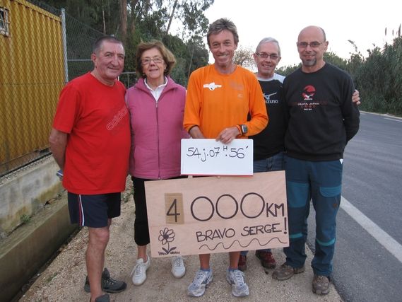 At km 76.37 we stop the vehicles, because it wasn’t feasible to stop earlier to be at the exact spot of km 76.02 (smile!!!). More seriously, Serge clocked 4000km at the end of the stage, the fastest 1000 km since he began.