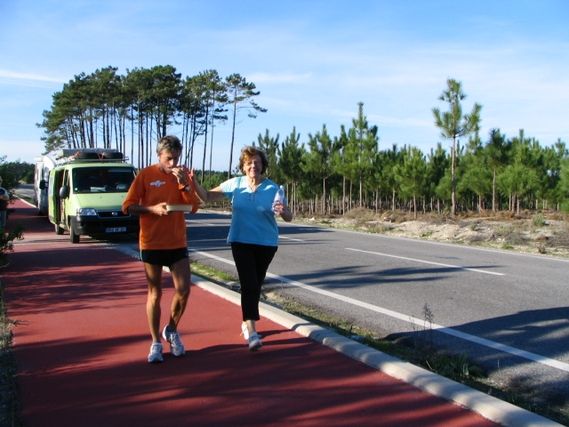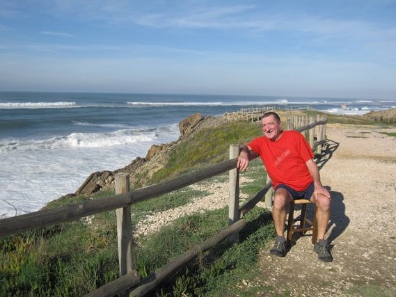 Brigitte and Roger went to the supermarket to shop and then they went for a walk on the beach at Figueira Da Foz before joining us at km48 and offering us toast and pancakes with ham. The site is grandiose at San Pedro de Muel, without any doubt the most beautiful seaside scenery that we will see because tomorrow we leave the coast. At this time of year the route that follows the coast is deserted and what is more, Serge has the comfort of a cyclist’s path that allows him to relax his attention.