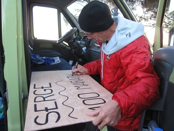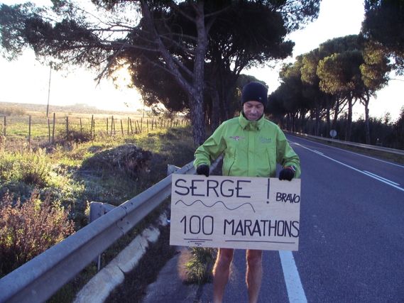 At the 9th km today, we celebrate the first 100 marathons, in 57 days 23 hours and 20 minutes.