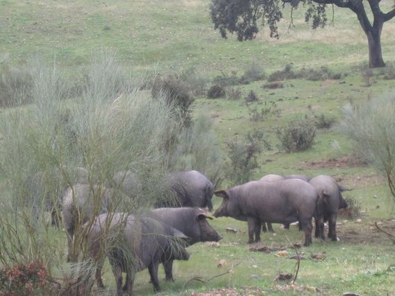 2 encounters today, of which one was serious: 2 Portuguese men at the Alqueva dam stopped to say hello in French and wish the team a bon voyage. The second was an unusual encounter with a pig that crossed the road in front of Serge to go to the farm on the opposite site. Normally, pigs are in fenced in fields.