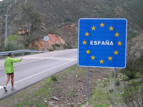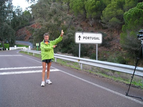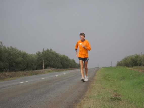 At the start this morning Serge complains that his abs hurt but the discomfort goes away. For the past few days at km 60, after 8.5 and 9 hours of race, he has had a slow down and today it takes the form of an attack of hypoglycemia. He has no juice. In such a case he takes a break in the van for a few minutes and then recharges with sugar. And once again he surprises everybody by putting 77 km on the odometer, whereas we thought he would stop at the 72nd km, but Serge wants to get over the 3km bump that brings him to the intersection in the village of Encinasola.