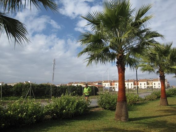 The day started with a reinvigorating fog before we reached the N630 and the town of Los Pajanosas, which is a rural village even though it is only 25km from Seville. We decided not to go through the center of Seville, which has a population of 1.5 million inhabitants if you include greater Seville. We skirt this beautiful Andalusian city to the north and east, our objective being to cross the Guadalquivir River. This river, on both sides of which Seville has not ceased to grow, is not easy to cross: south of Seville there is no bridge, only a ferry. In greater Seville 6 bridges were built in the 130 years between 1850 and 1980 and six more bridges were added in the 5 years between 1988 and 1992, no doubt to accommodate visitors at the World’s Fair of 1992